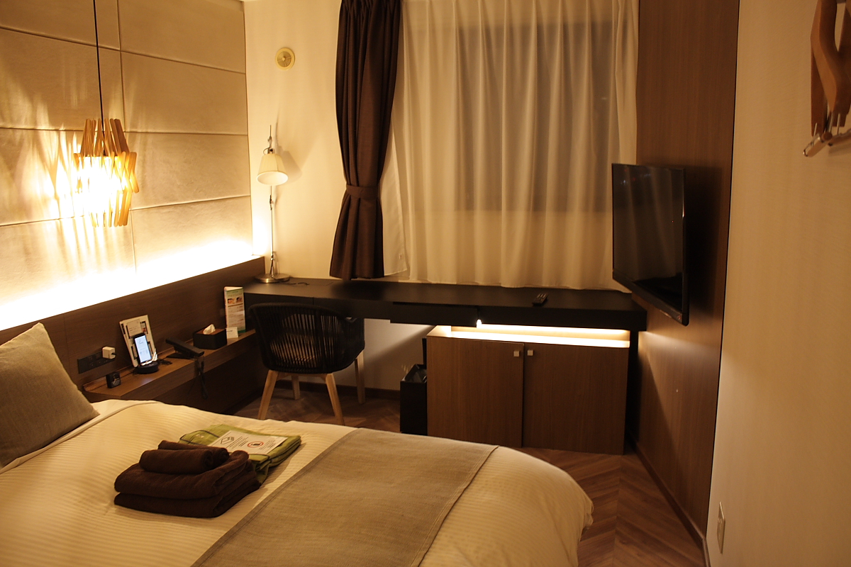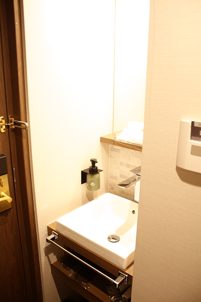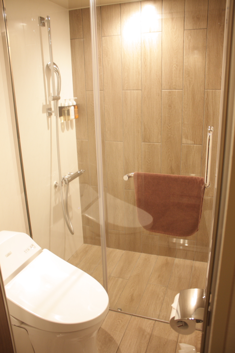 部屋は改装されたあとのようで、とてもきれいでした。温泉大浴場があることもあり、部屋のバスルームはシャワーブースのみで、洗面台はバスルームとは別にありました。