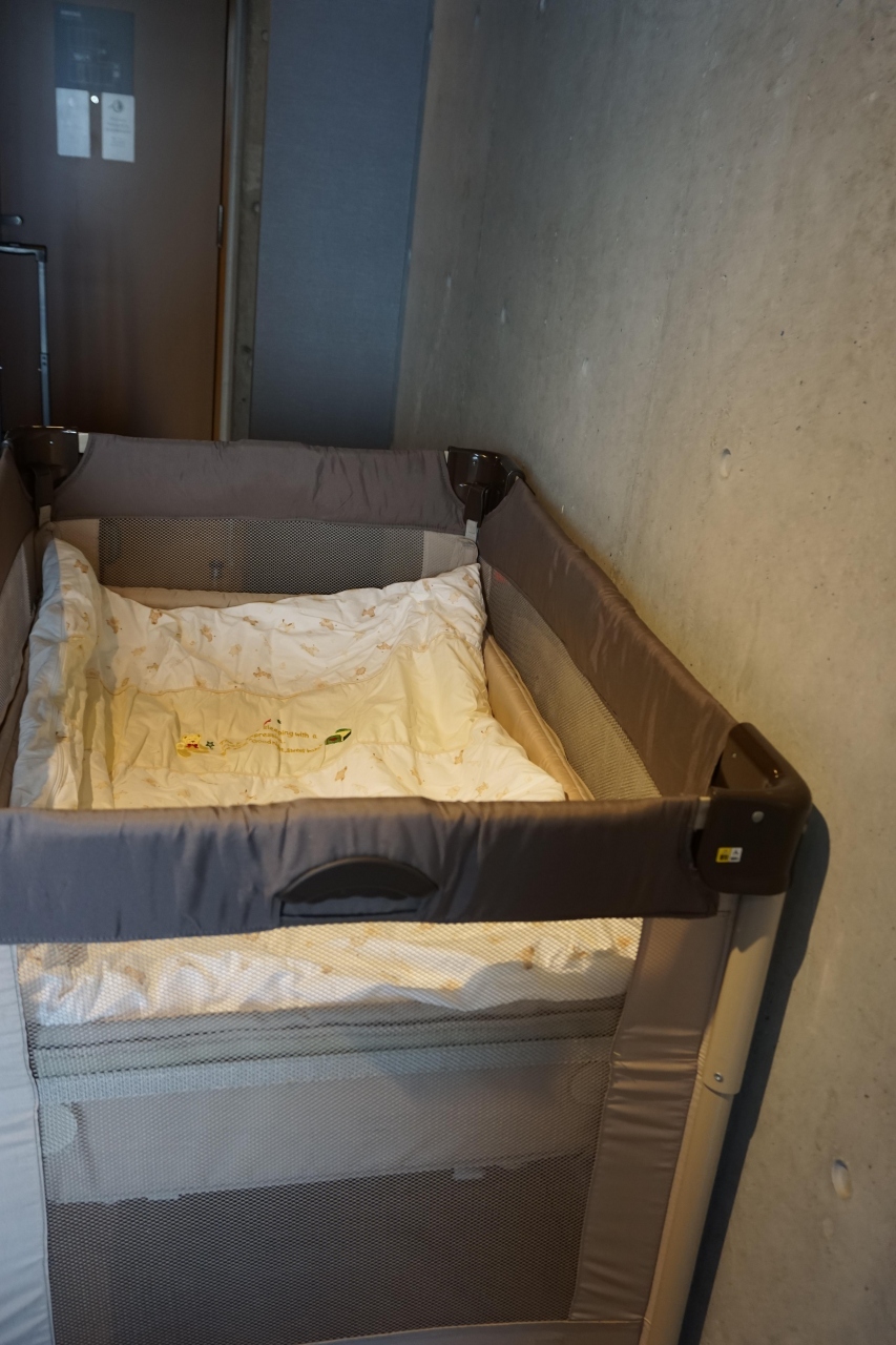 ベビーベッド事前予約の時に頼んでいたので、部屋に置いてありました。新館は、ベッドも広く、ベビーベッドを使用しないでも親子3人余裕で眠れました。那覇港まで徒歩5分くらいです。ホテルを出て左に真っすぐ歩けばもう目の前にフェリーがみえます。