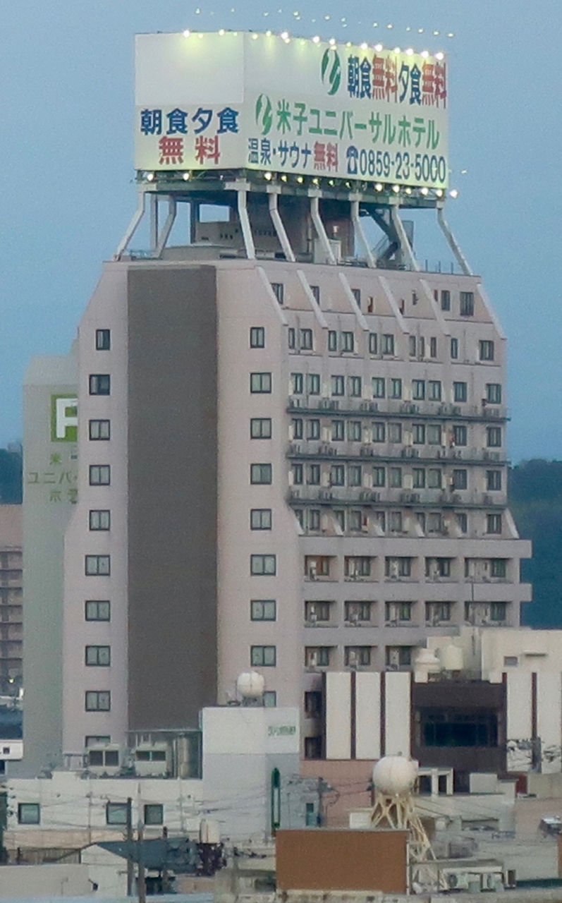 ホテル自体は経年を感じさせるビジネスホテルであってお世辞にもキレイとは言えない。ただしホテル上層階にある大浴場ほどは広くない風呂場がなかなか良かった。風呂の施設自体はどこにでもあるものだが、なによりも展望が見事なのだ。とくに南東に聳える大山が見事なので、できれば視認できる日没までに入浴されることをおすすめします。