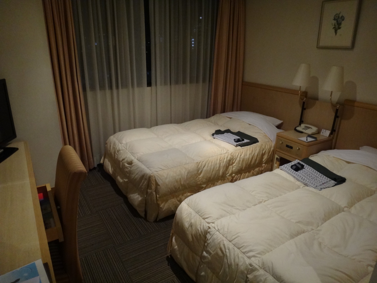 夕食はツアーにしては、豪華で十分満足。部屋はビジネスホテル風。