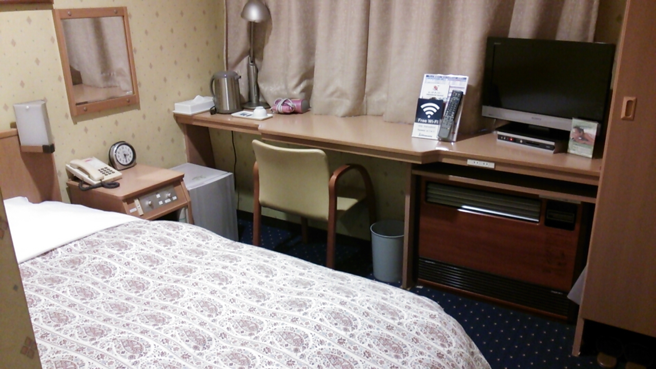 木目調の造りですが、古さを感じさせる内装で、部屋の広さもやや狭めでした。しかし1泊3200円でシングルルームを利用できるのはありがたくさらにバス・トイレは付いていたので嬉しかったです。