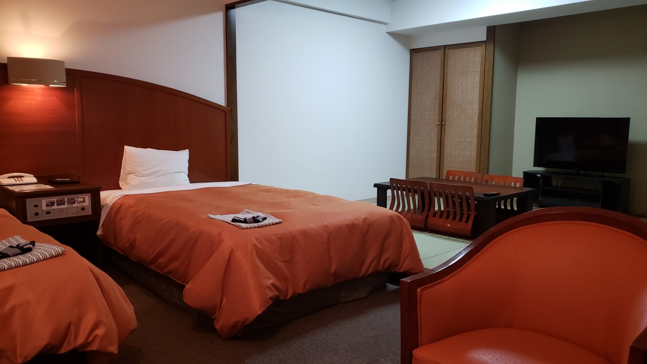 お部屋は広く、ベットと和室があり家族でぴったりの部屋ですね。