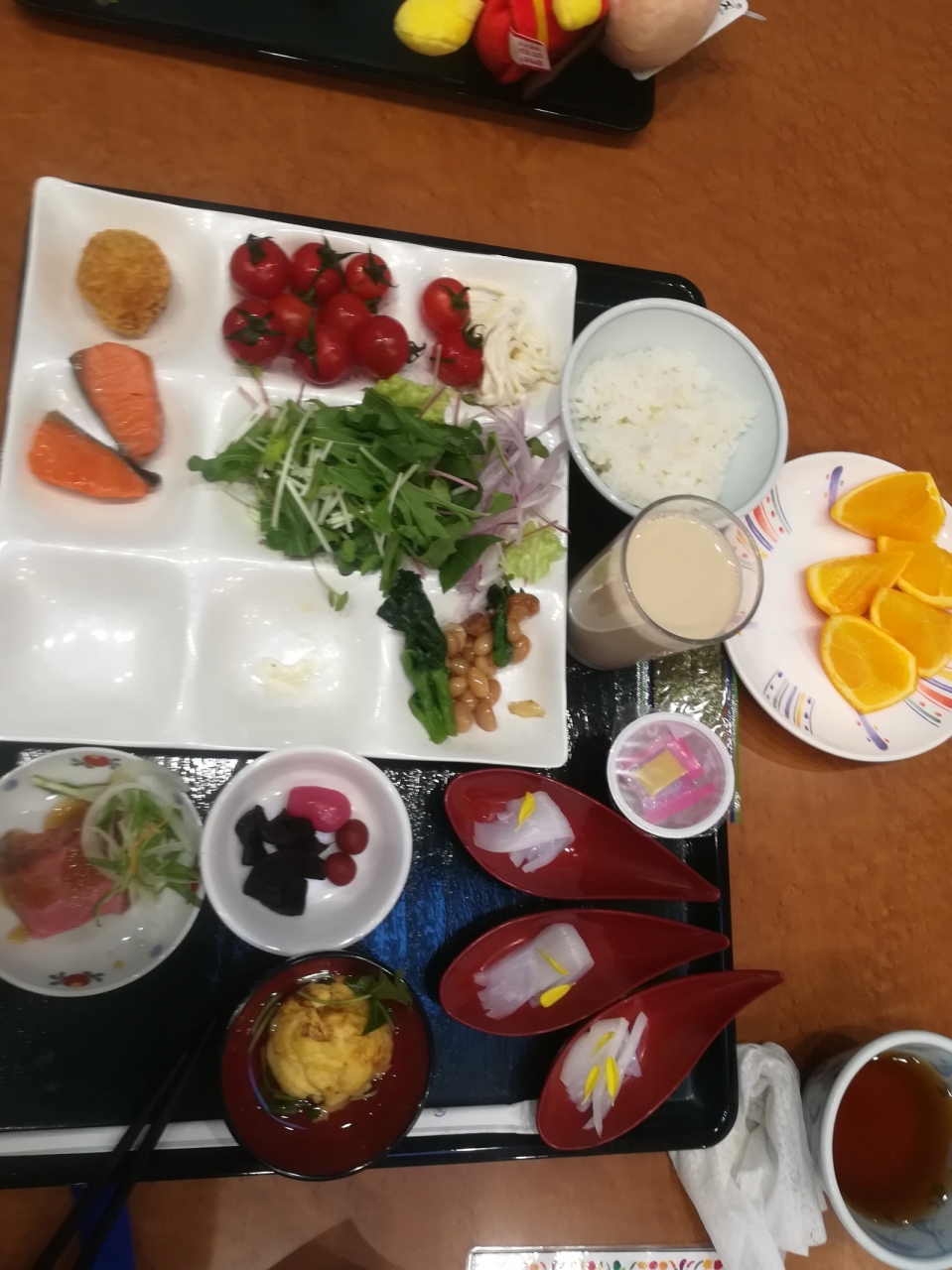 朝御飯のバイキングがとても美味しかったです。イカのお刺身などもありました。