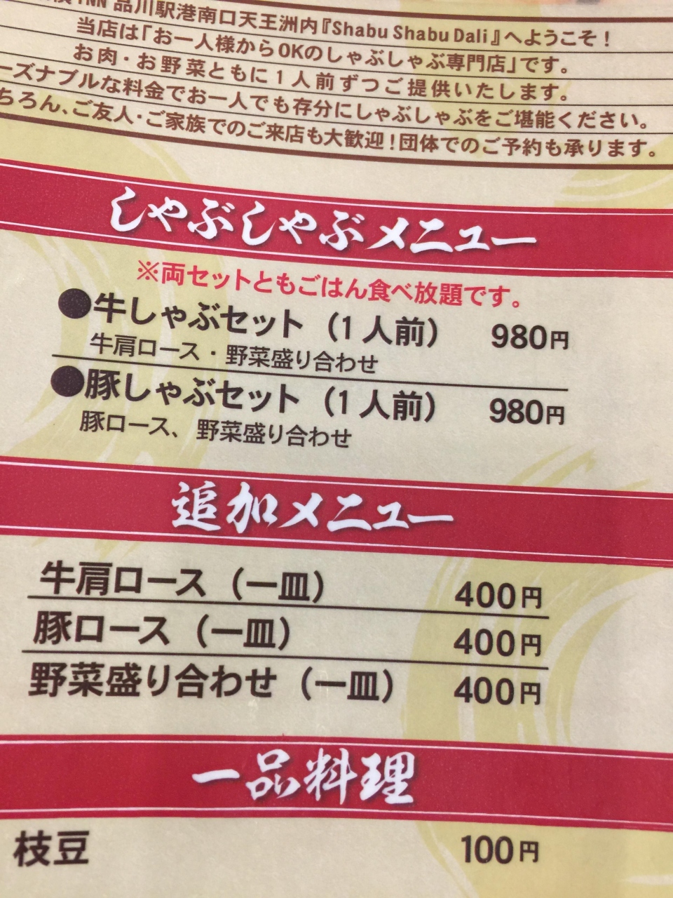 特記すべきは200円でエビス生ビールが飲めること。しゃぶしゃぶが980円で食べられること。