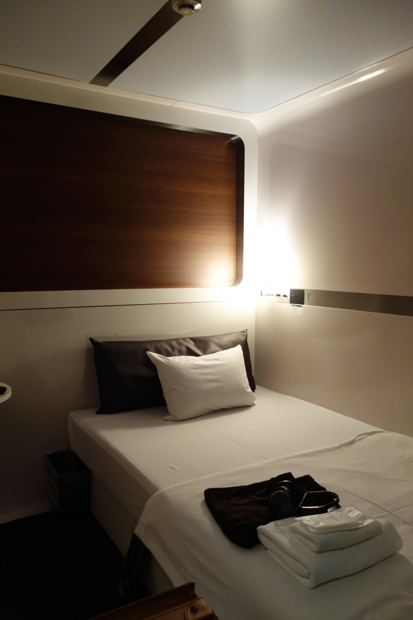 ベットスペースのみのビジネスクラスと、荷物を広げるスペースがあるファーストクラスがありそれぞれは1,000円くらいの差額になっています。