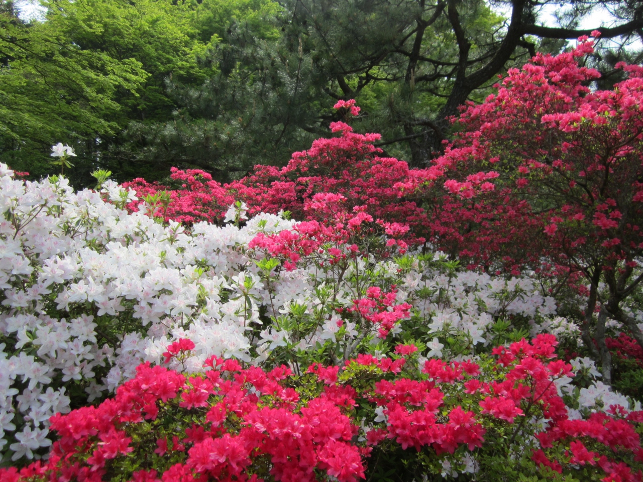 バス停南温泉荘からすぐです。2時半ごろ訪れるとコンサート中で、きれいな歌声を聴きながら、ちょうど見頃のつつじを鑑賞しました。