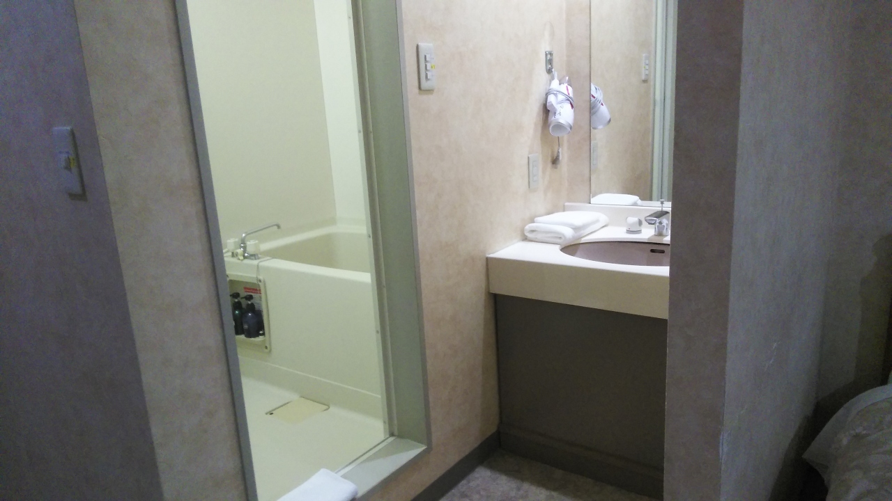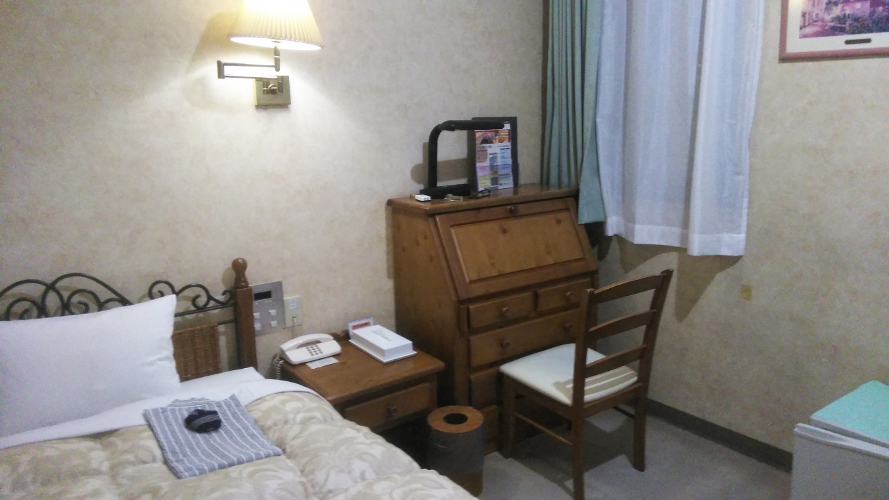1~2階に同じ経営と思われる衣料品店があったようですが既に閉店しており、3~4階がホテルになっています。最大の魅力はビジネスホテルとしては珍しくバス・トイレ・洗面が独立していることで、チェックアウトが早かったので食べられませんでしたが、バイキングでない朝食も魅力かも知れません。何故か中2階のようなところからエレベーターに乗らなければならないことと、部屋・廊下とも照明を最小限にしているのがちょっと残念です。