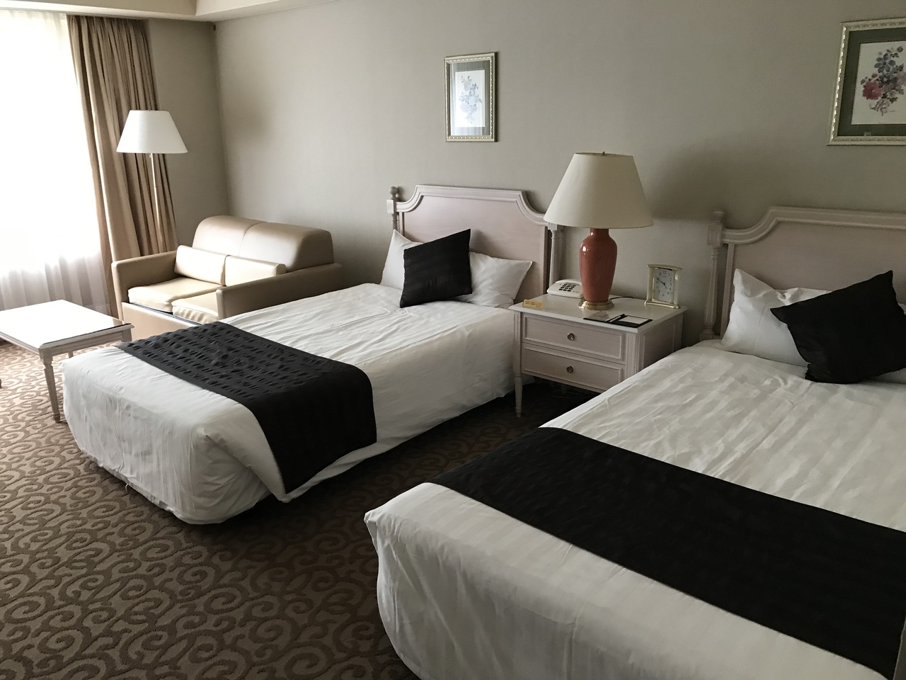 部屋はツインでしたが、広々とした空間になっており、バスルームもとても広かったです。ホテルの周りには食べるところはないのですが、1時間に二便、長崎駅への無料シャトルバスがあるのでとても便利でした。ホテルへの帰りも21時頃まであります。