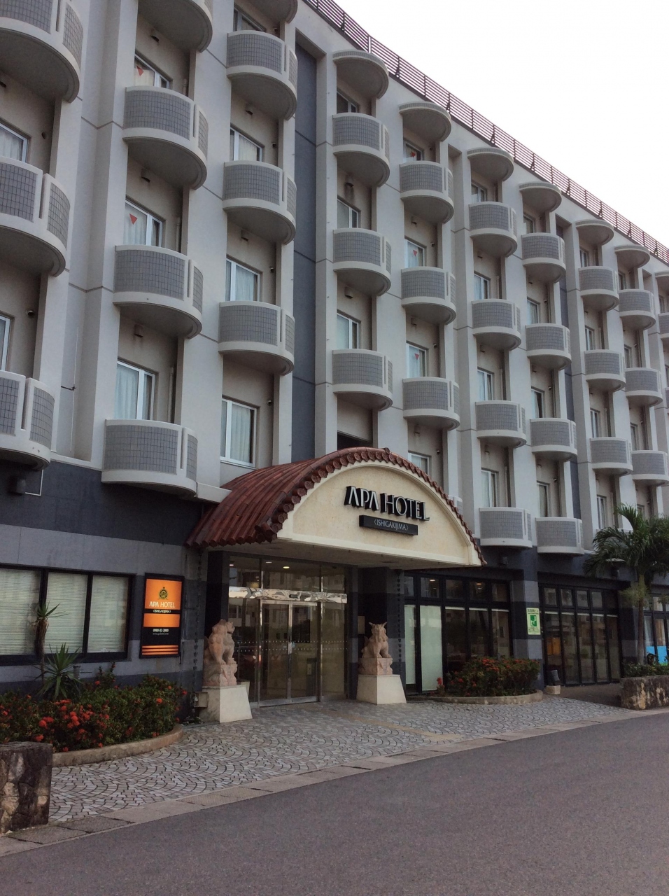 離島観光がメインの目的だったので離島ターミナルから徒歩10分位のアパホテルに泊まりました。アパホテルによくある大浴場はこのホテルにはありません。 駐車場が広くてレンタカーを停めやすかったのと、ホテルの近くにドラッグストアやコンビニがあったのは便利でした。