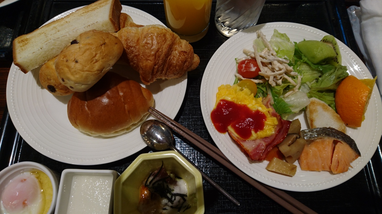 朝食は「そうそう、ホテルの朝食バイキングってこういうのだよね~」がほぼ出揃っていて品数に不満無し、また豆腐の横には醤油、スクランブルエッグの横にはケチャップが取りやすく置かれているなど、食べる前のストレスが一切なかった。味も満足の範囲。