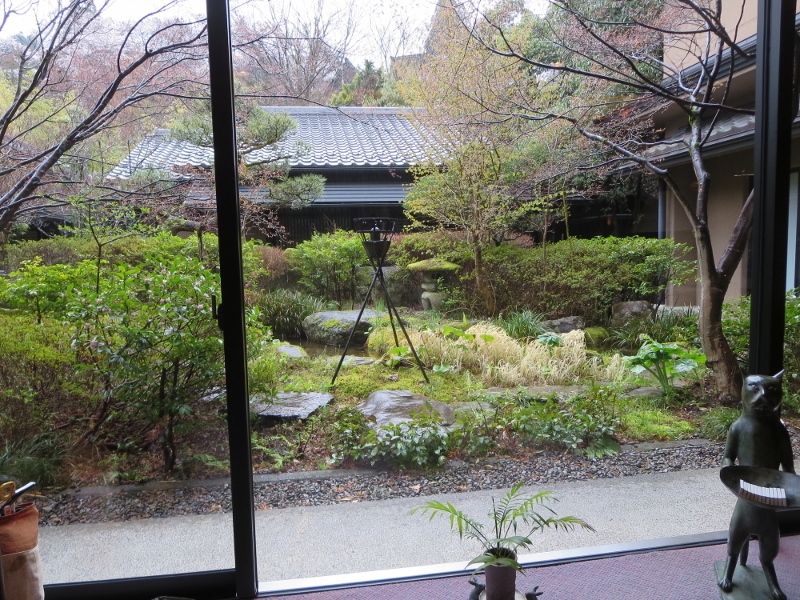 雨の日に到着したので、濡れた靴に新聞紙を詰めたりして気を使ってもらいました。しっとり濡れた庭もなかなか良い景色でした。食事は個室風の食事室で、一品ずつ丁寧に持ってきてくれました。静かに過ごせる大人の宿という感じでした。