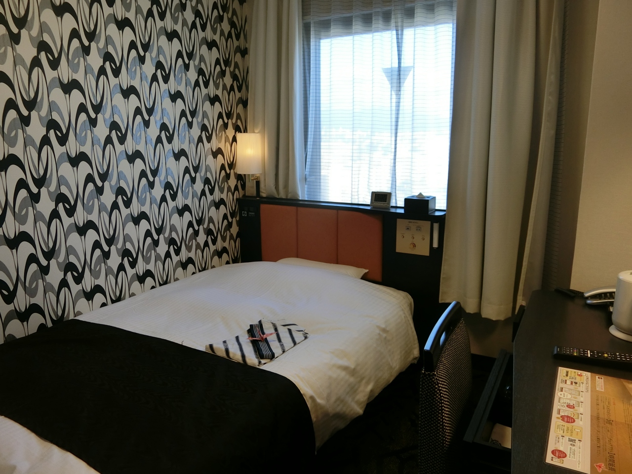 部屋にはFree-wifiや冷蔵庫など、一通り設備が整っていて便利です。個人的に良かったのが、近くのアパホテル金沢中央14階にある天然温泉「サウナ片町」に無料で入れること。部屋のタオルとカードキーを持っていき、受付で名前と部屋番号を書けばOK。ナトリウム塩化物泉で、無色透明のしょっぱいお湯でした。