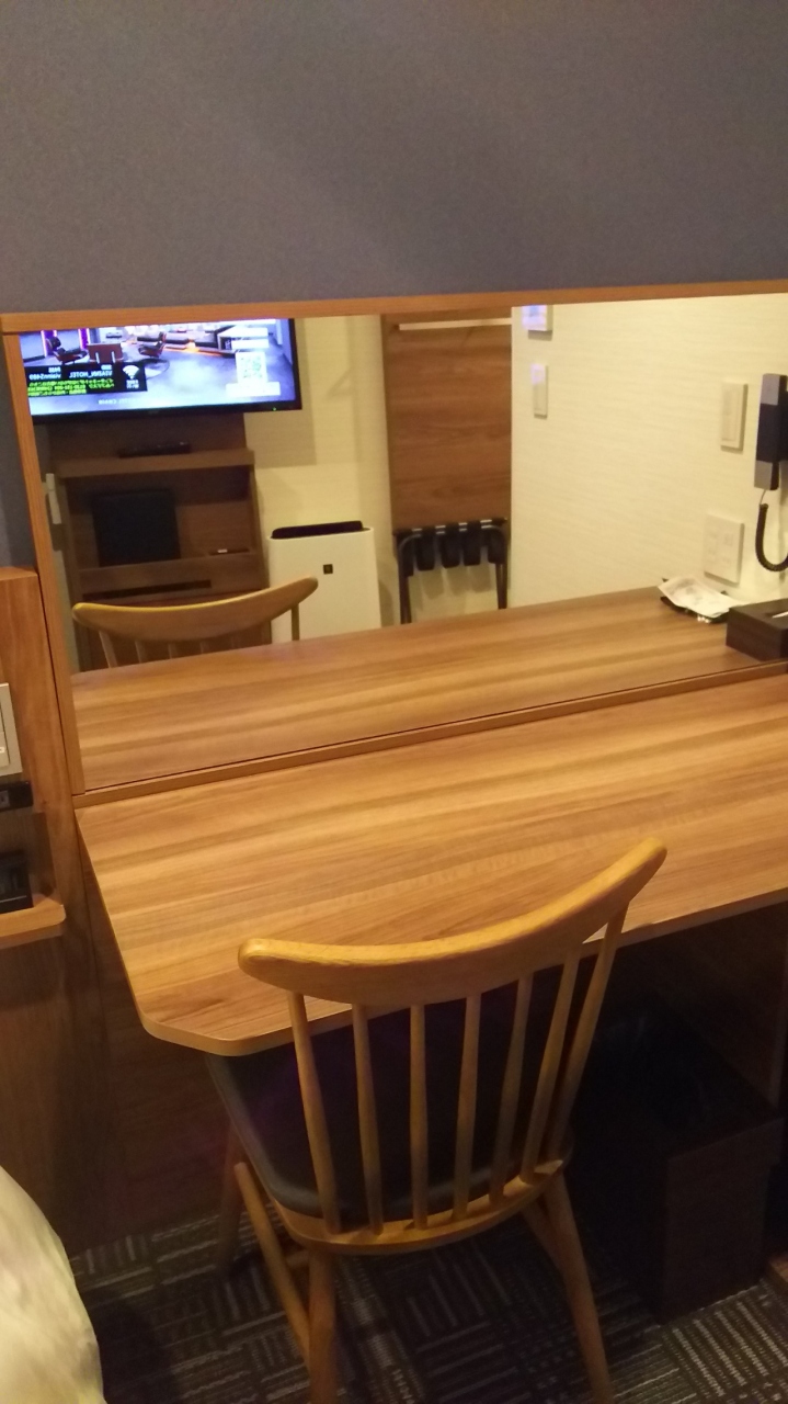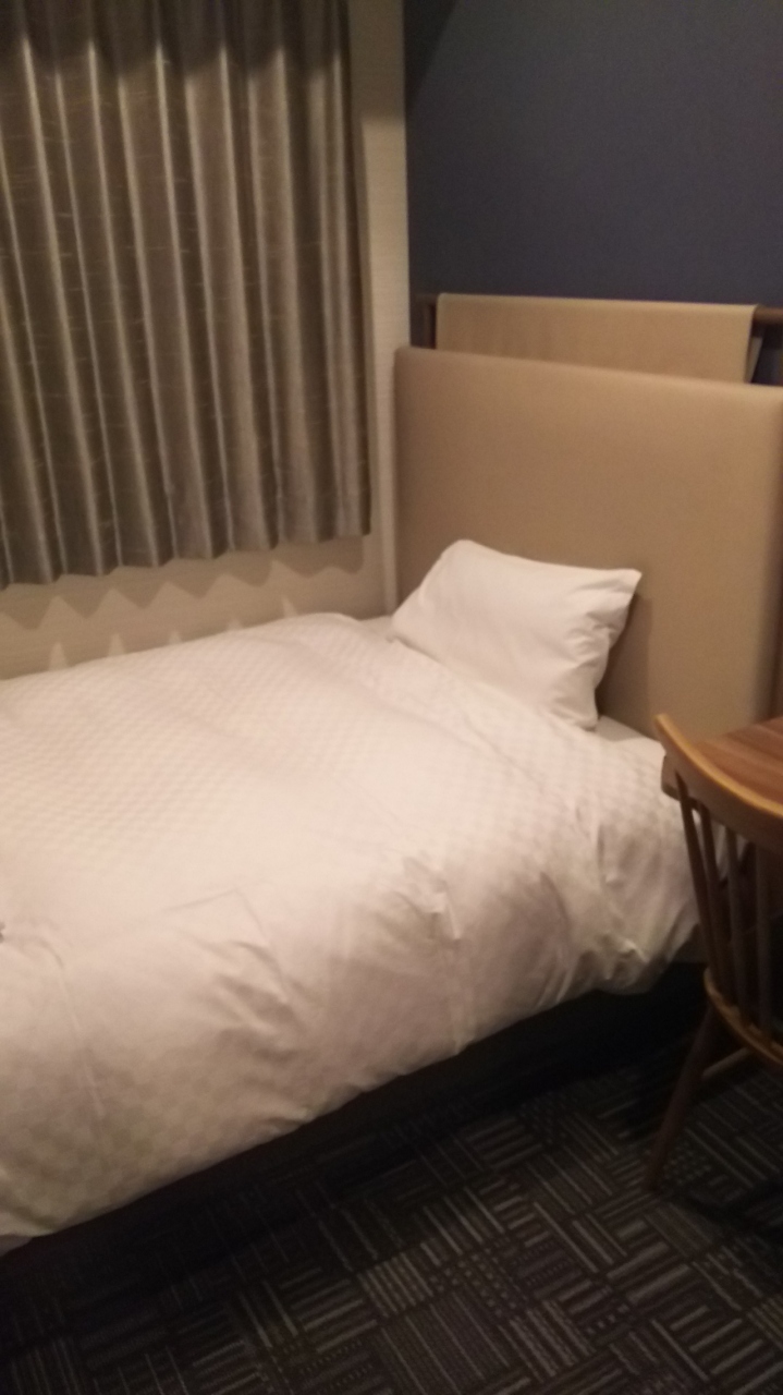部屋は普通のビジネスホテル、ベッドは大きくコンセントプラグはあちこちにあります。
