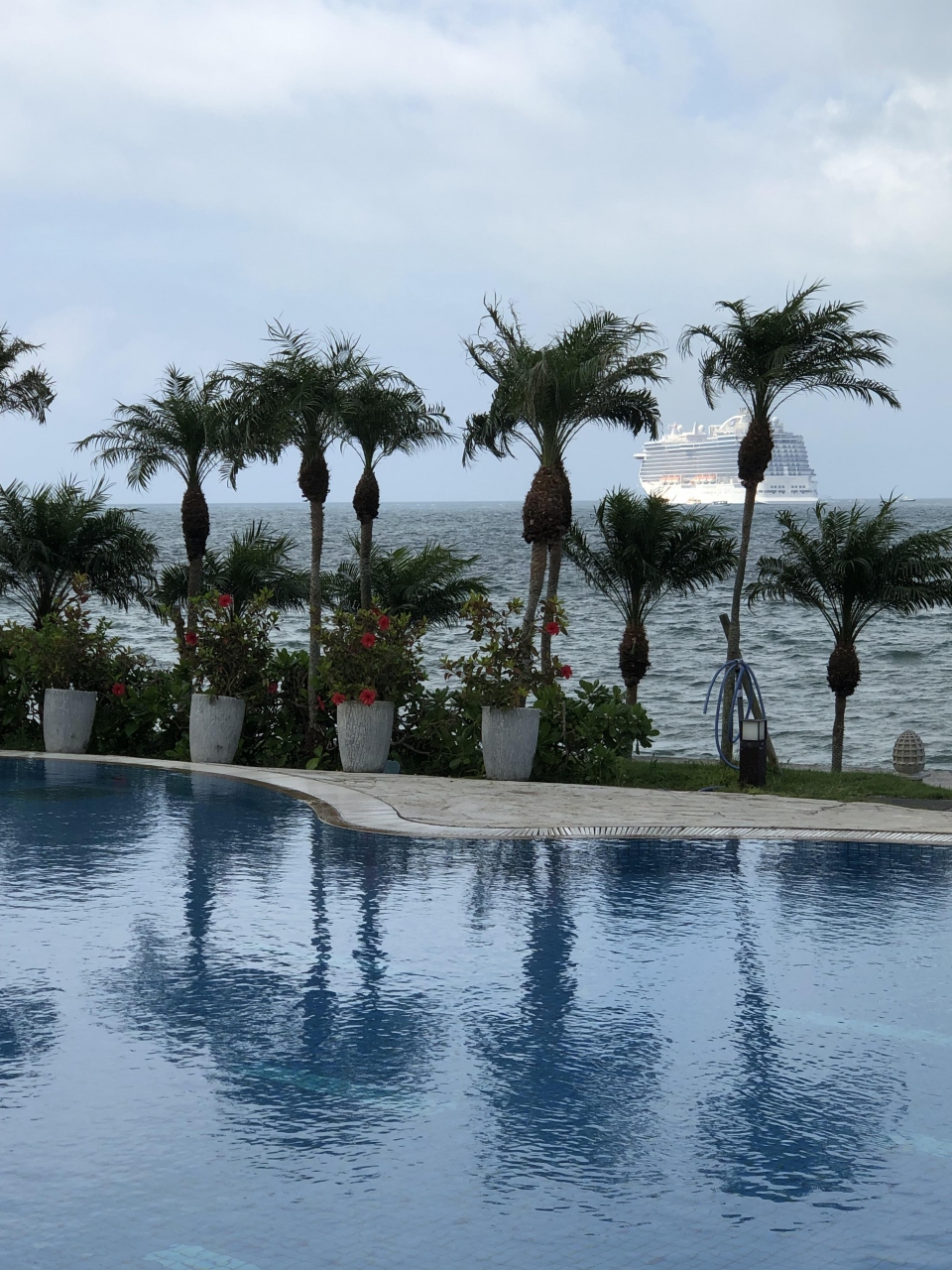 ホテル内は綺麗で南国の感じでお庭なども素敵ですが、海は見えますが泳げません。