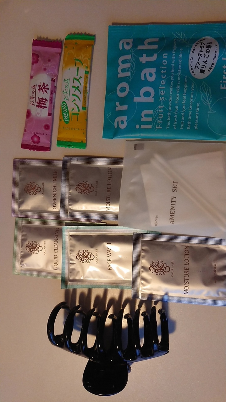 他にも入浴剤が数種類、顆粒のコンソメスープ、梅茶等が置いてありました。