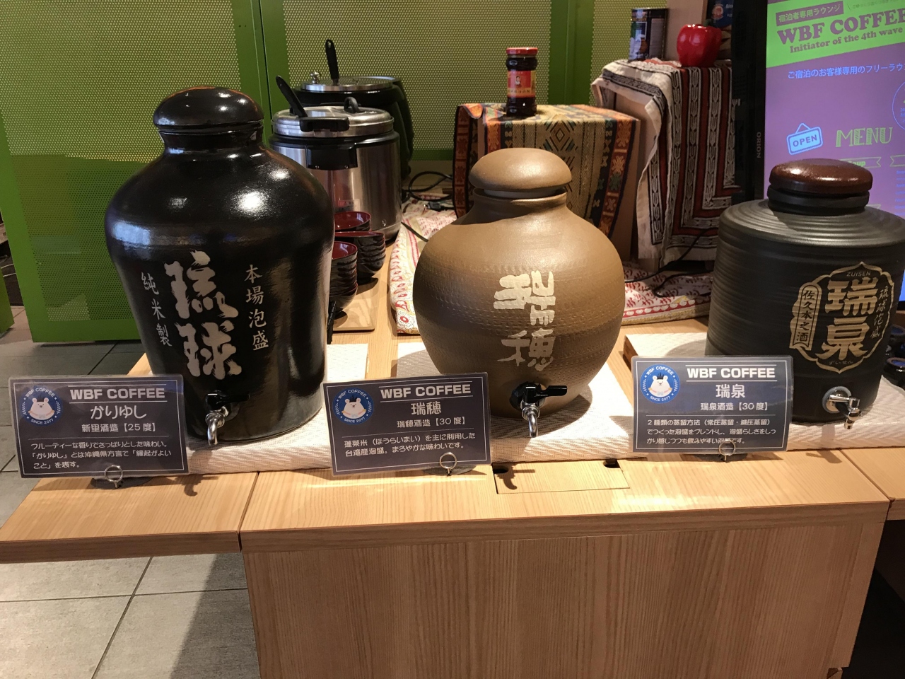 コーヒーやお茶くらいならよくあるが、何と泡盛が3種類、スープ2種類、お茶(ティーバッグだが)約20種類ほど用意されている点はなかなか良かった。