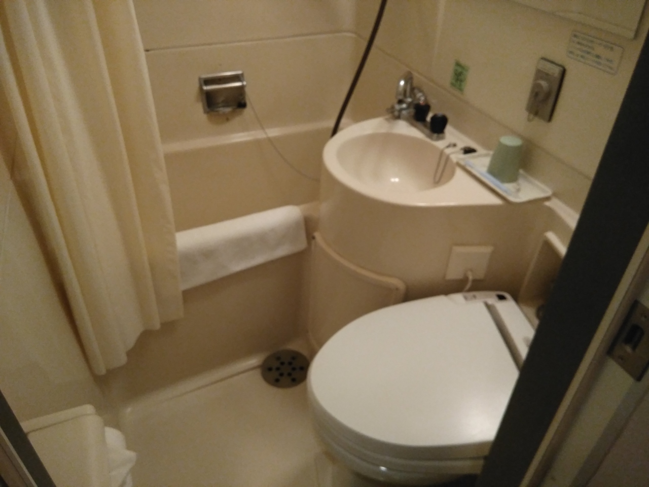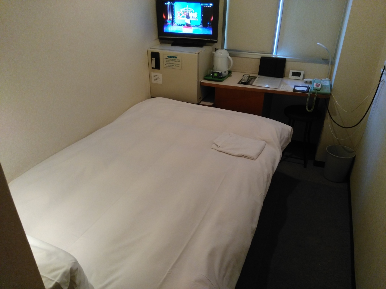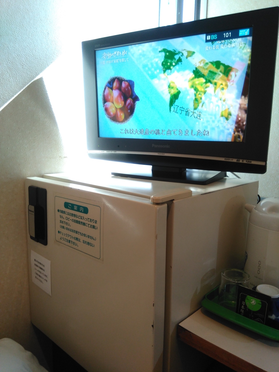 客室のテレビは14型と小さいですがBS放送も視聴出来ます。風呂はかなり狭いですがシャワー利用なら大丈夫でした。