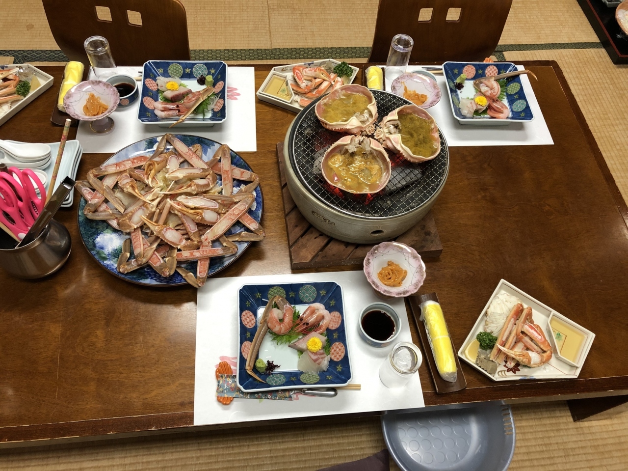 食事は部屋食でしたが、蟹の量も多くまた味も美味しく満足でした。中居さんは必要最小限での対応でしたが、気を使わなく良かったです。