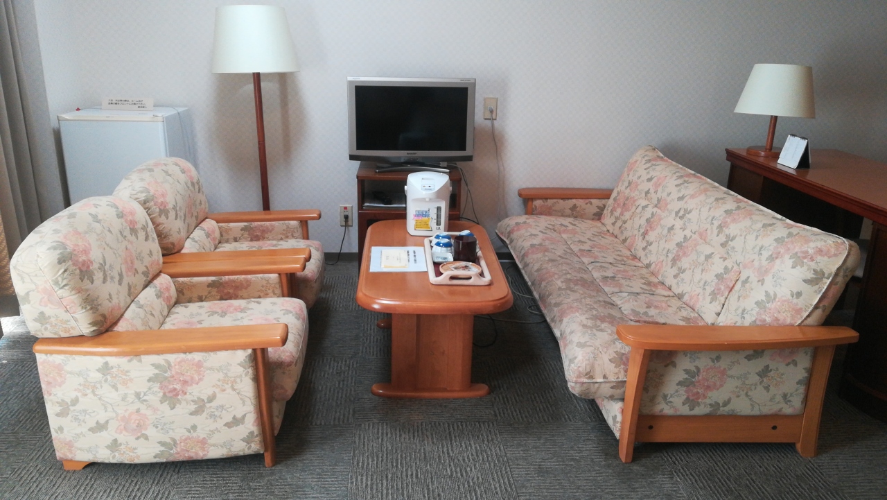 室内設備 : お茶、お菓子、浴衣、コップ、湯沸かし器、テレビ、お風呂アメニティー