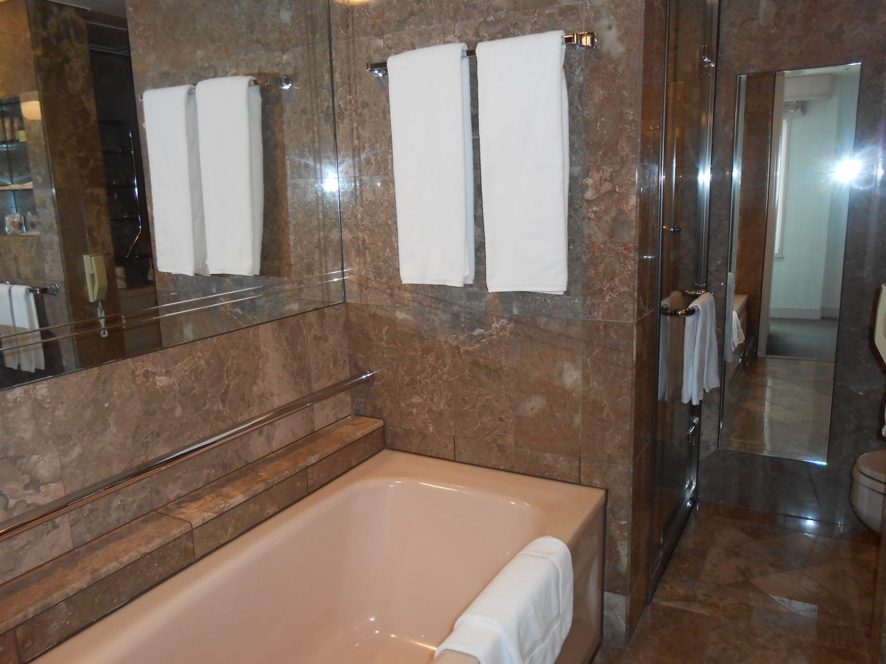 倉敷美観地区入口からすぐ近くです。フロント階のロビーはあまり広くありません。フロント階のトイレも非常に狭くびっくりしました。客室は非常に広く、バスが大理石でなかなかすごいです。シャワーがバスと別にあります。シャワーは何か所もシャワーヘッドがついていて、一度にたくさんの場所からシャワーを浴びることができ、驚きました。窓からの景色は見るべきものはありません。古いものでしたがマッサージチェアがあり、使用しました。使用感はよかったです。部屋が広く、バス、シャワー別で、コスパはよいと思います。