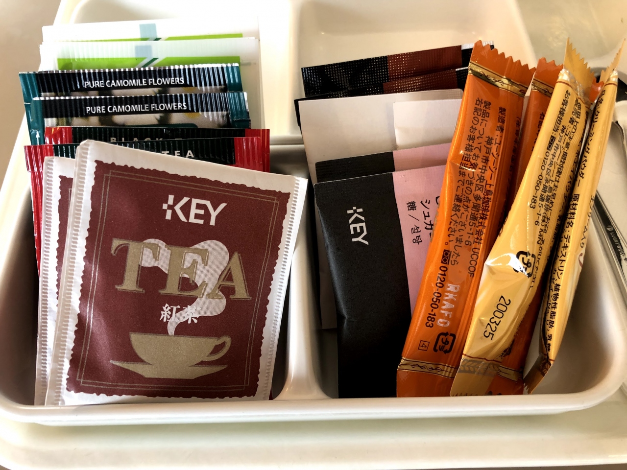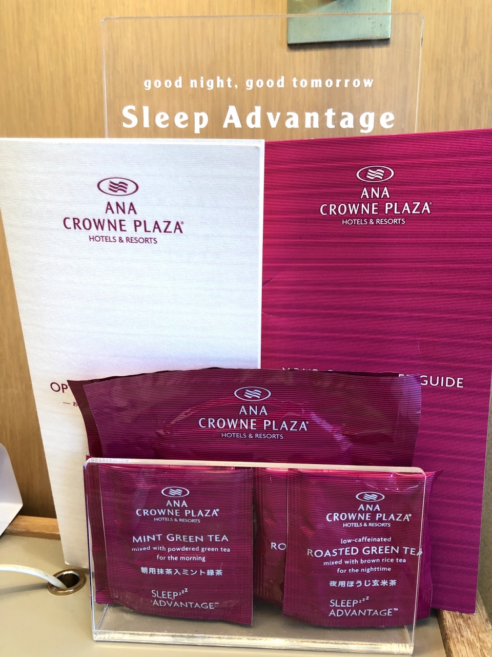アメニティが充実していて、よく眠れるお茶、目覚めすっきりのお茶、めぐりズム、入浴剤等が置いてあり、フット枕やアロマストーンディフューザーも貸し出ししてくれます。