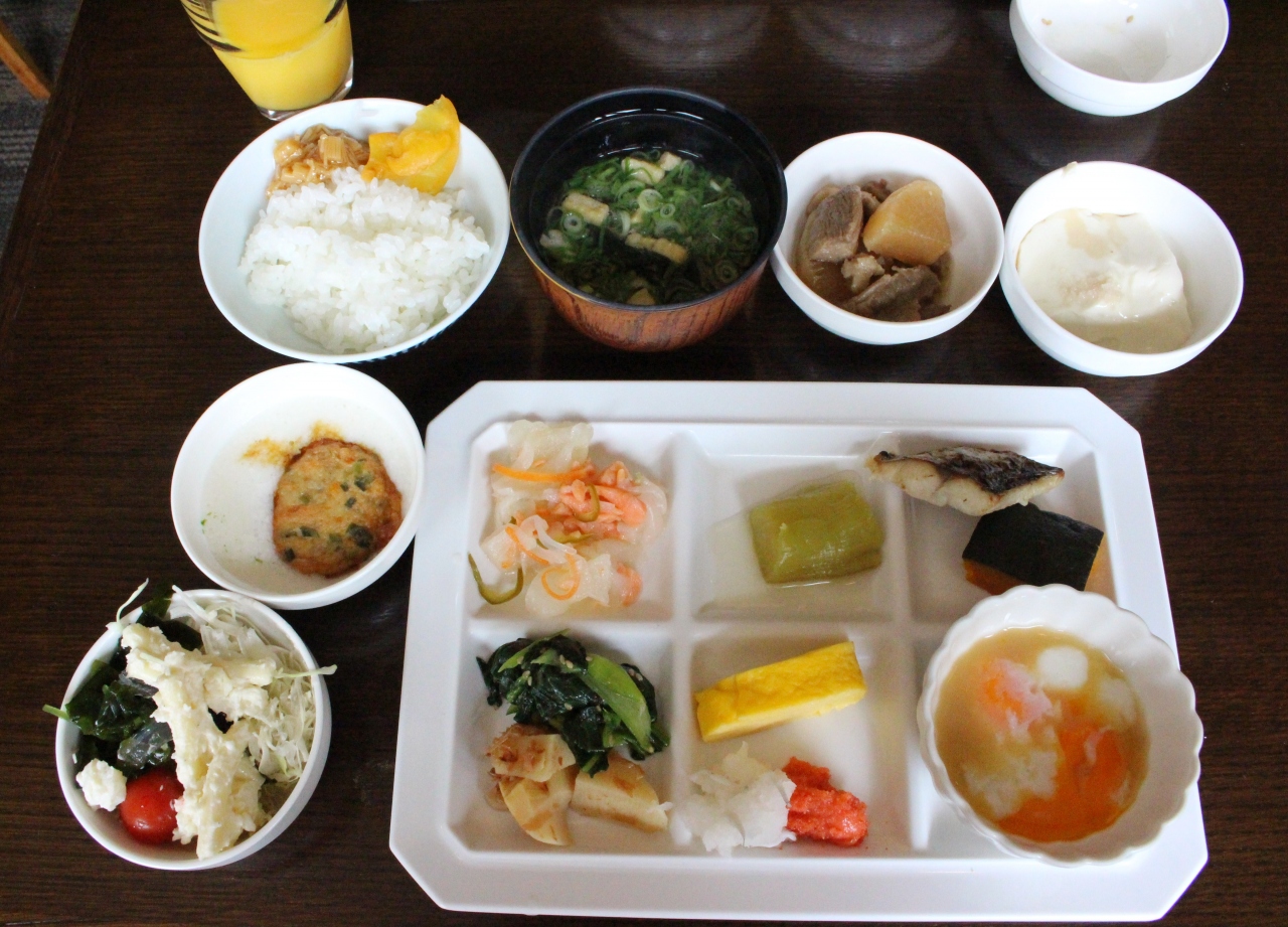 食事はお肉、お魚、野菜バランスよく見た目も綺麗で、朝食も和食中心でしたが“ぼっかけ”などの地元色のあるものもあり焼きナス、シラスおろしもおいしかったです。