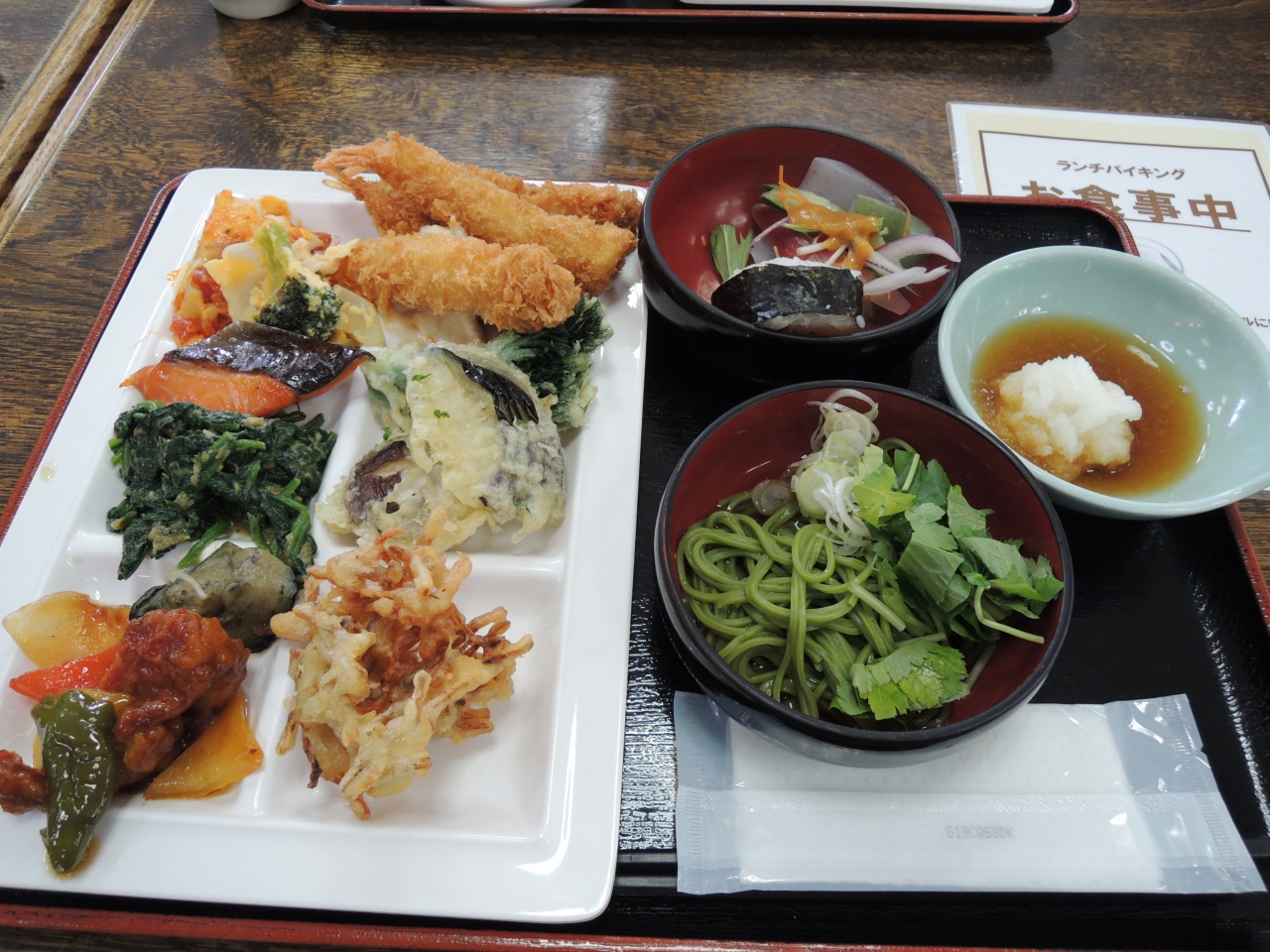 手軽な金額で温泉入浴にランチバイキングの付いた日帰りプランがあり、そちらの利用をしてみました。大浴場は2つあり、一応、露天風呂もあります。二階なので、眺めが良いですが、外から見えるんじゃないかとドキドキのお風呂でもあります。料理は茶そばや山菜のてんぷらなどがあり、美味しかったです。