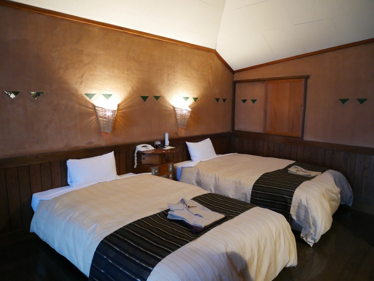 久住高原のホテル。コテージ風の建物が並んでおり、高原の雰囲気そのままのとても落ち着いたホテルです。各部屋から大浴場やレストランは少し離れていますが、その分プライベート感も十分ありました。