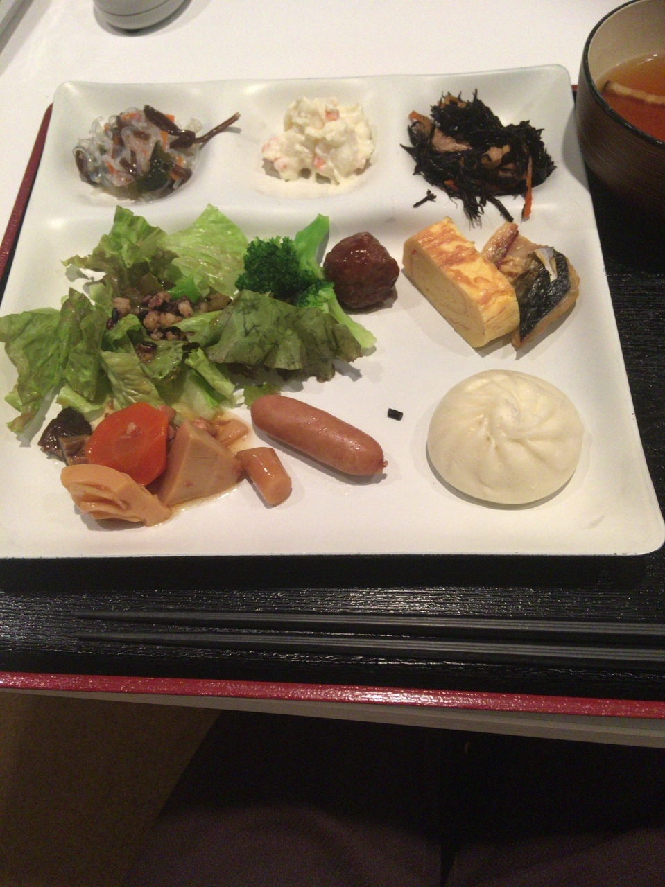 もう一つ楽しみにしていたのが、朝食。バイキング形式で、和食系のおかず・パン・サラダ・シリアル・ドリンクなどなど、充実していました。これで無料はかなり嬉しいです。