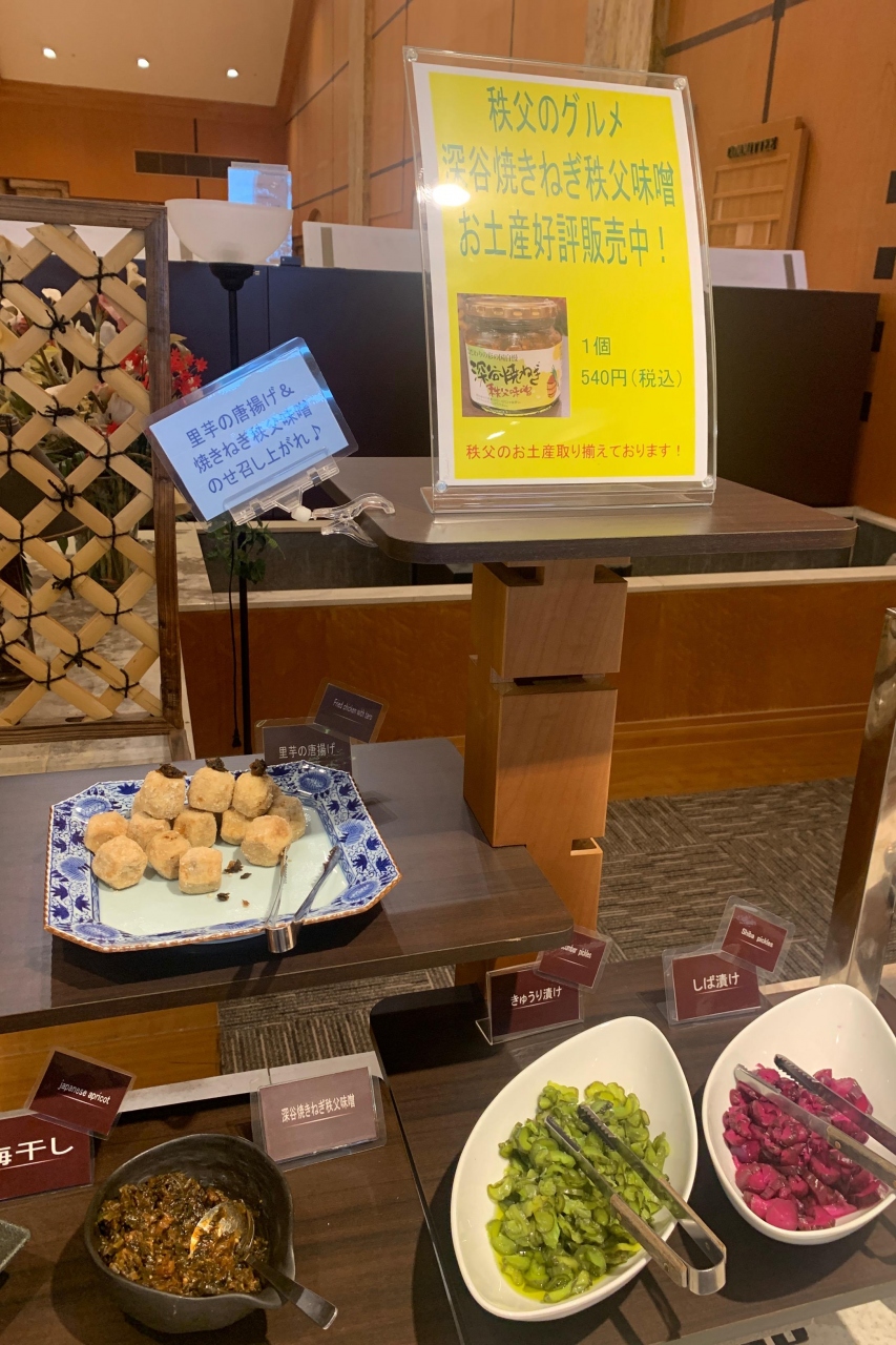 朝食バイキングは、秩父名物も食べられます。