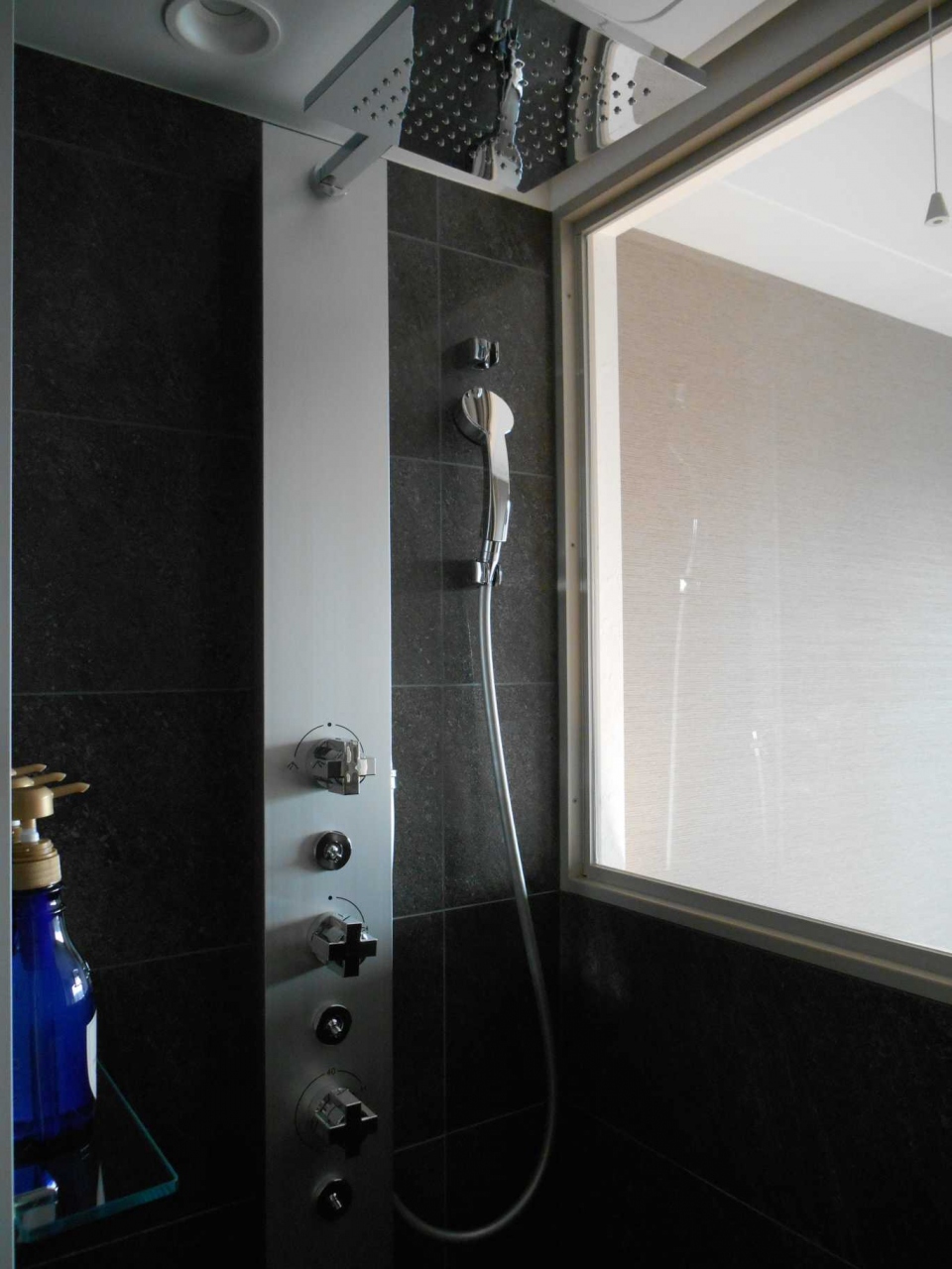 この部屋には湯舟は無く、シャワーブースのみ。でも、トイレと洗面は別々なので快適です。