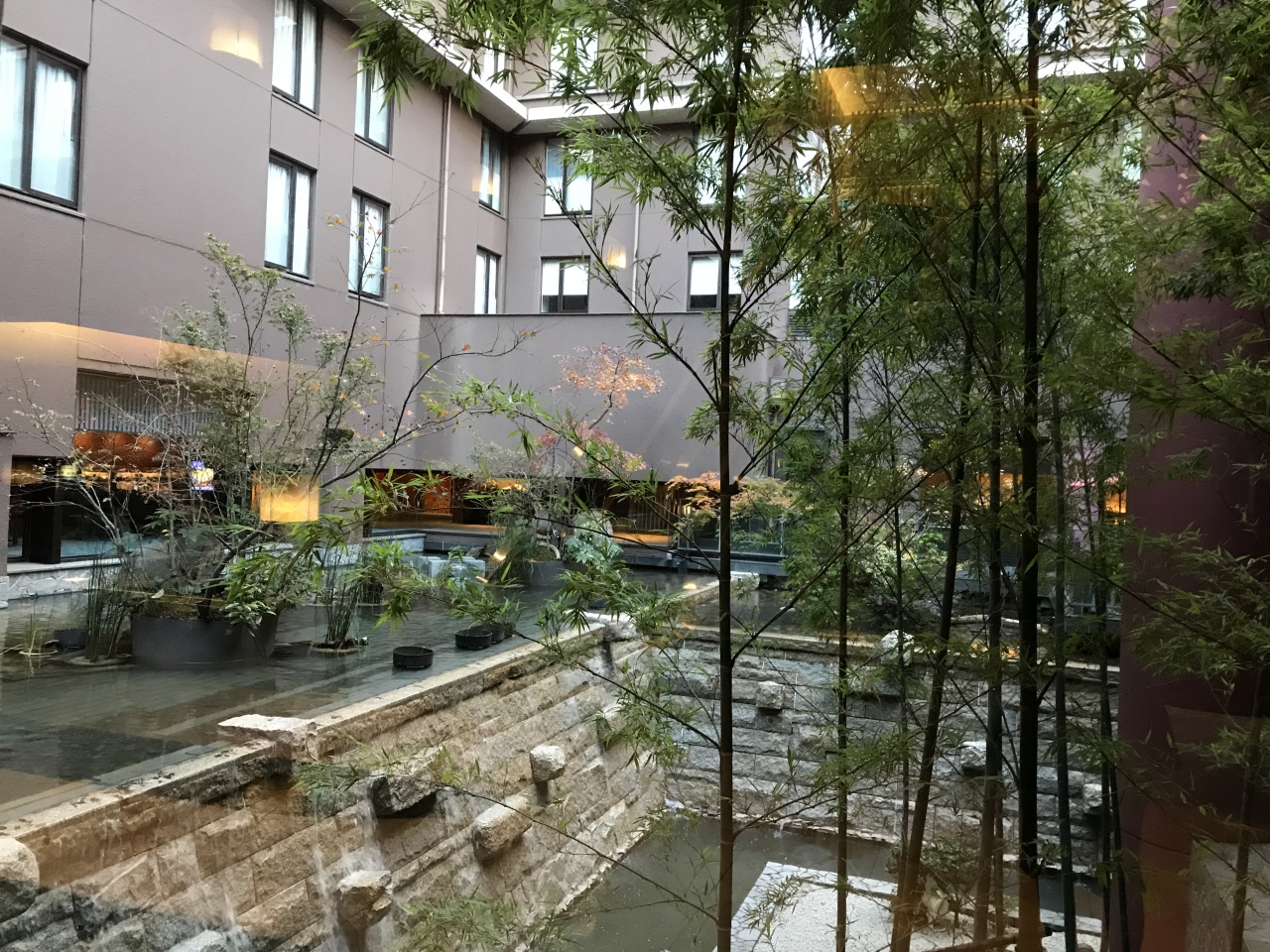 京都駅からはホテルのシャトルバスで行きました。和風ホテルで京都らしい感じです。お庭には丁度もみじの紅葉がほんのりと残っており雰囲気抜群。値段も少し安めで快適なので和風の旅にぴったりなホテルでした。時期のせいかすいていました。