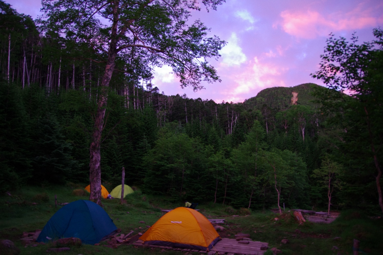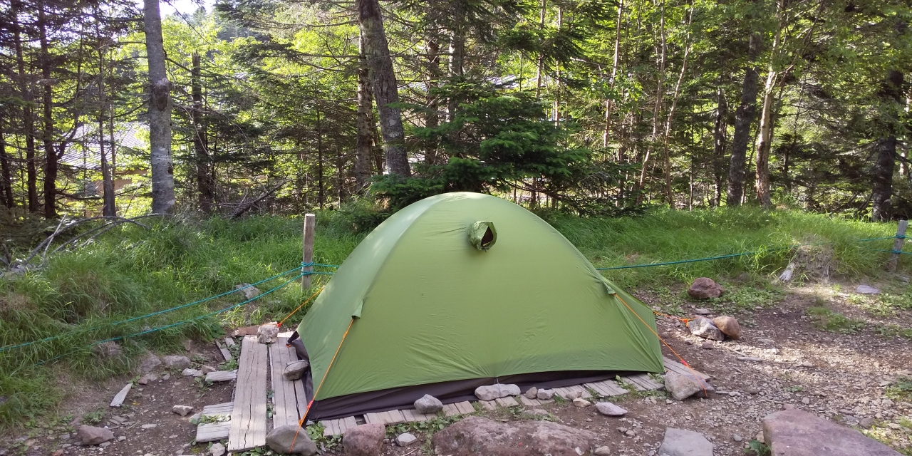 八ヶ岳登山、まだ登ったことのない硫黄岳と横岳に登るのに、オーレン小屋のテント場で前泊しました。登山口から歩いて1時間20分ほど、高低差400mほど登れば到着します。