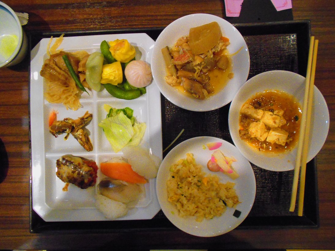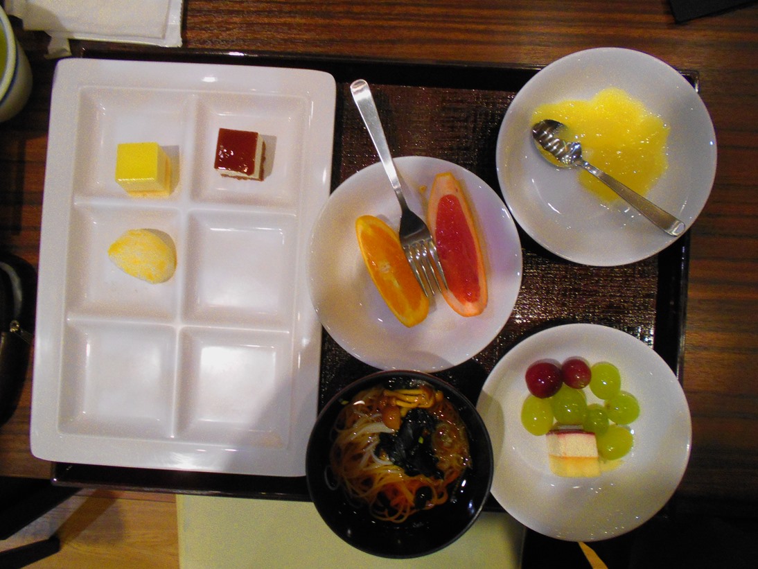 食事には少し早めに行きましたので、すぐに着席できました。メニューはバイキングで、デザートも含めて3ラウンドしました。私の好きなカレーはちょっと甘めで残念な味でした。