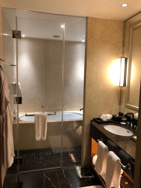 フロントは2組しか対応できないので混雑時は後ろのソファで待機するようだ。フロントのスタッフは手際がいいので待たされても気にならなかった。部屋は高層階で眺めもよく部屋は重厚感があり快適。プラチナ会員(現チタン)の為クラブラウンジが無い代わりにセントレジスバーで同行者1名まで無料カクテル券をもらえた。部屋のバーも3000円分無料であったが単価が高いので3-4本しか選べなかった。しかしジュース類も厳選されていて普段見掛けないような特別な物で、なんか得した気分で嬉しかった。バーは雰囲気は最高でグレードが高かったが、若いサラリーマン風な団体がいて騒がしく残念だった。朝食は素晴らしい。ブッフェの他にもオーダーメニュ(エッグベネディクト、ステーキなど)もある。フィットネスは少し狭いが高層階から景色を眺めながら運動できて気分が良かった