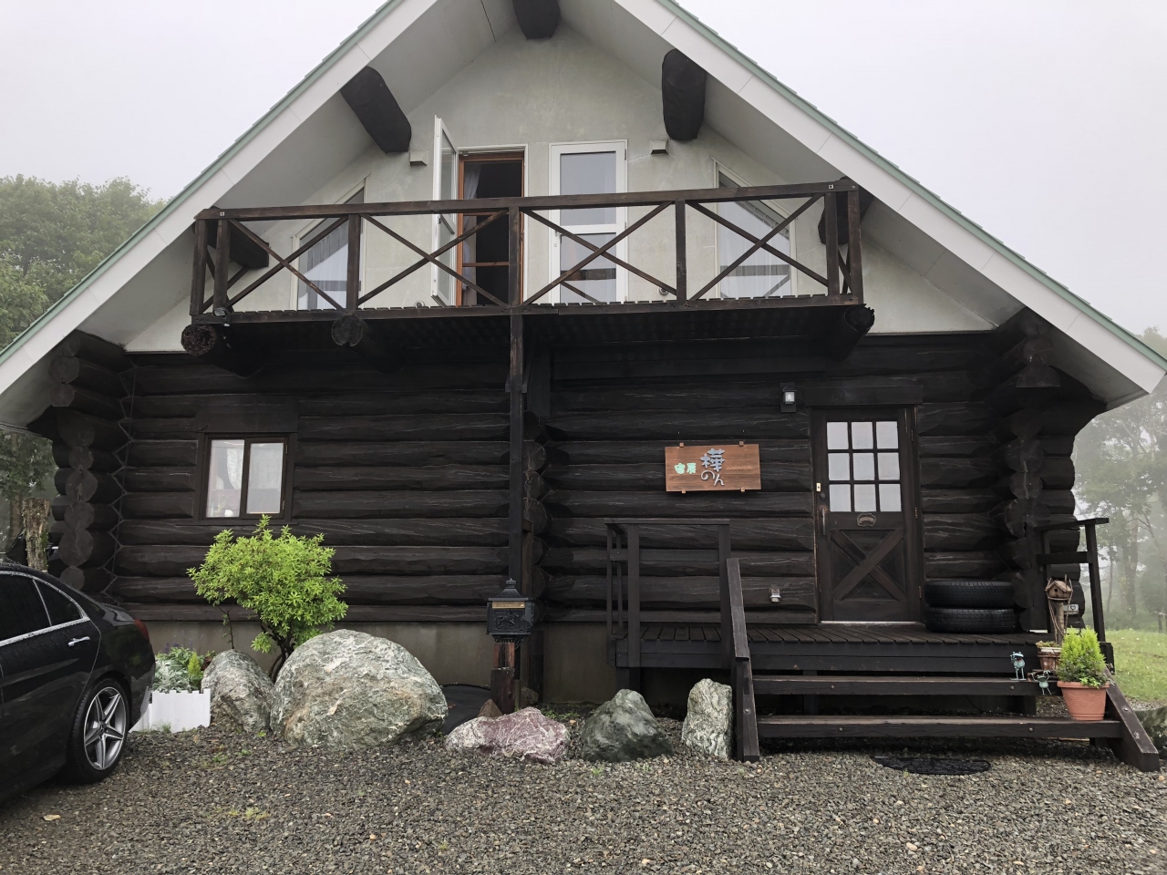 釧路バスのバス停前に位置した、ログハウスのホテル