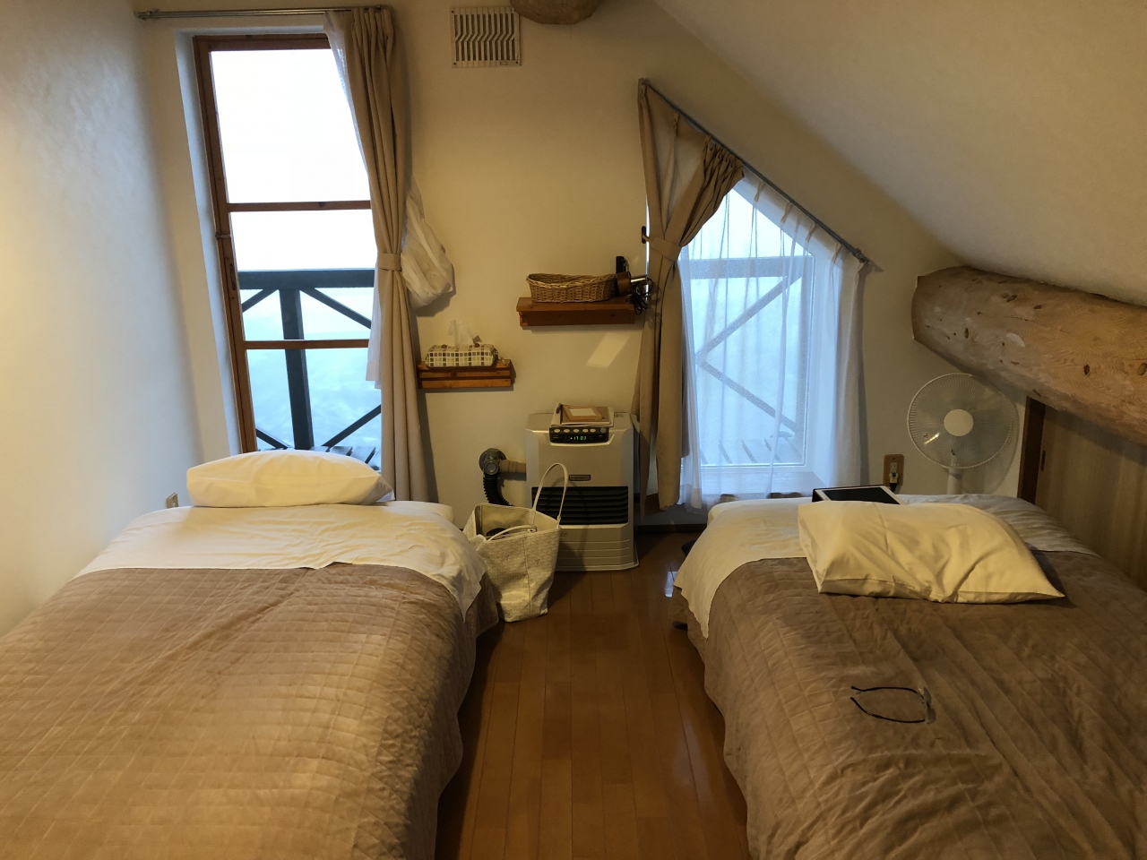 部屋・・・・2階洋室ツイン(クーラーなし、扇風機あり)