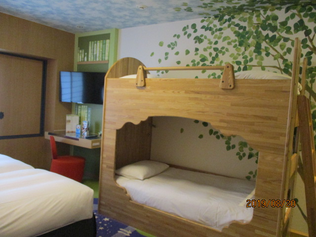 2段ベットが入ったスペースは本来机のあった部分なのでお部屋で食事名との差異は床に座り込む形になりましたがキャンプみたいで楽しかったです。