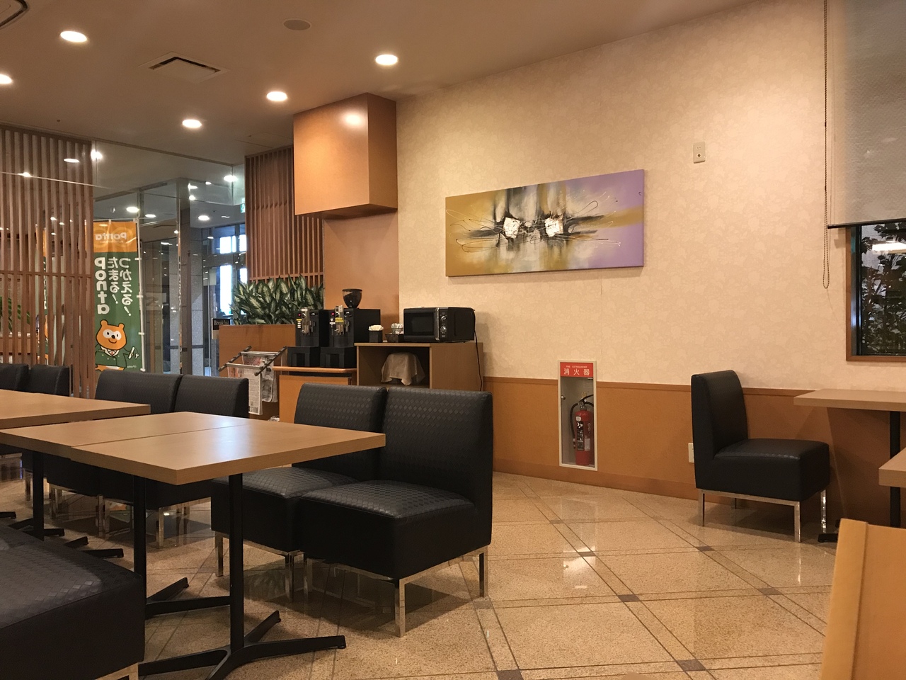 フロント前のロビーではセルフコーヒーサービスもあり一応満足できるホテルですが、今時全室禁煙出ないのは、個人的減点(禁煙がいっぱいだったので、致し方が無く喫煙となった)