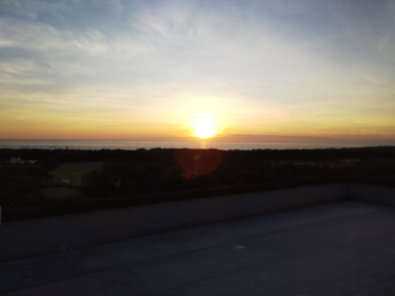 残念ながら、宿泊した日は晴天だったにもかかわらず、わずかの雲が水平線に立ちこめ、海に沈むところがみえませんでした。