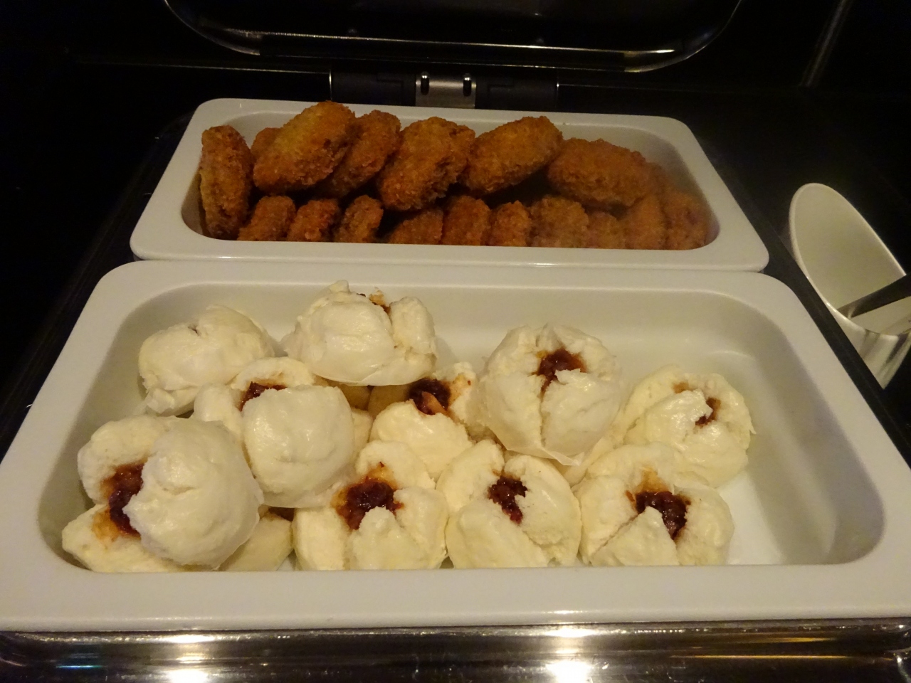 朝食、カクテルタイム以外にも食べ物が豊富で、お昼の時間にはピザやうどんなどがあったので食事代わりにもなっちゃいます。