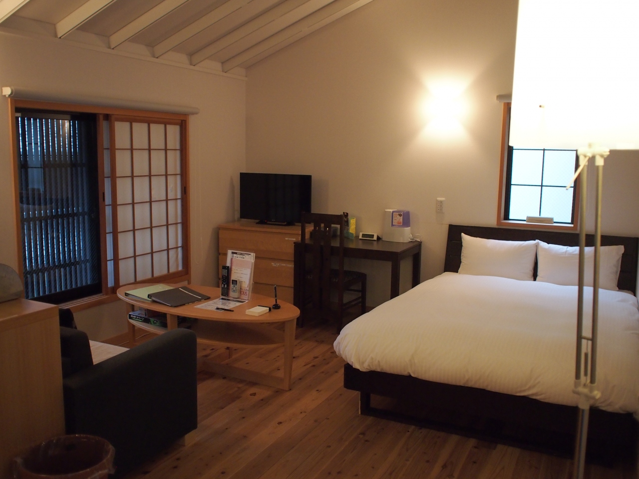 しかも1室12,000円と、近くのホテルよりひろくて割安感あり。冷蔵庫には飲みものがたくさん入っておりすべて無料、お菓子も数種類あり無料が嬉しかったです。