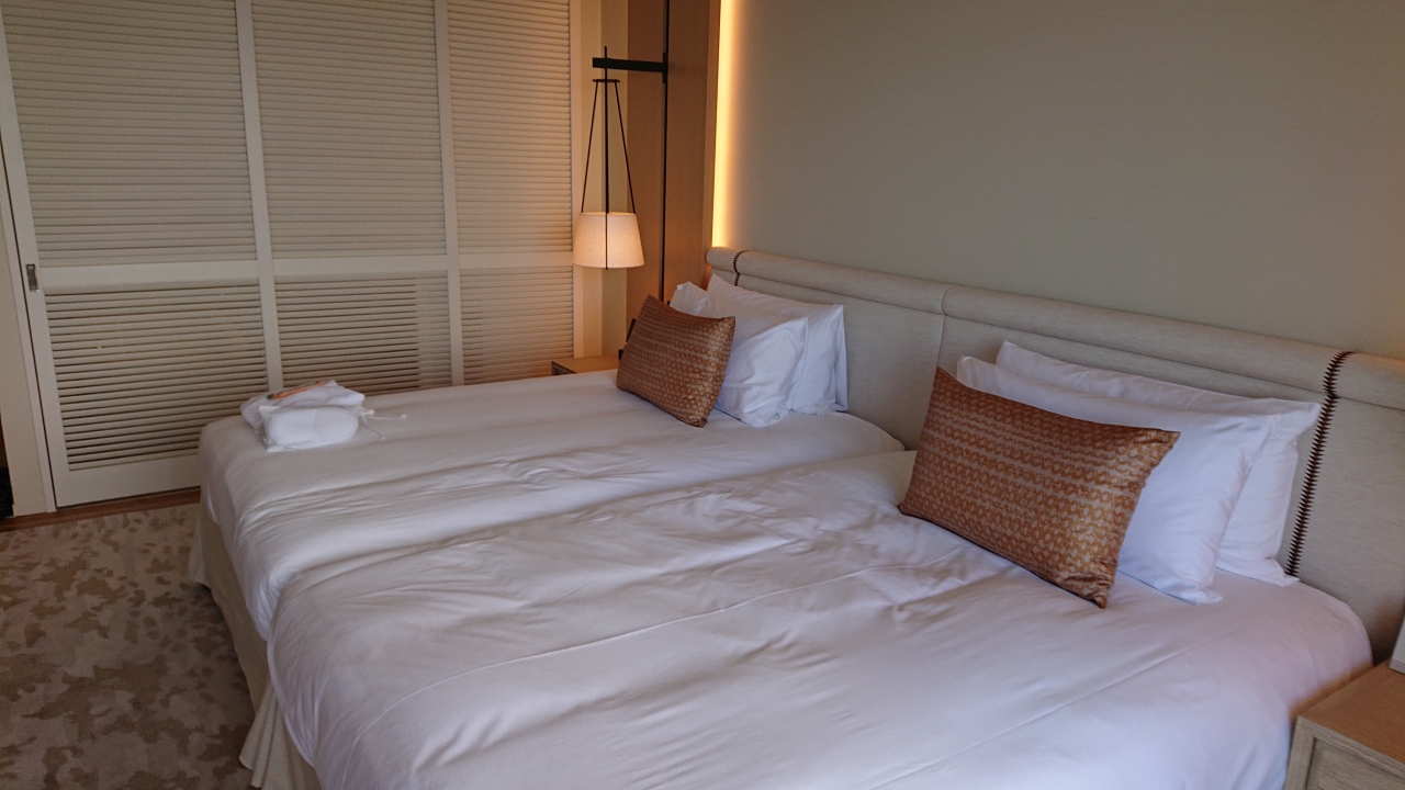 できたてということで、施設は大変きれいですし、タオル類もフカフカ、ベッドも快適です。昨年訪れた瀬良垣ハイアットのようにまだ従業員の方が慣れていない様子もありますが、施設の細かい作り(特にバストイレ関連)にやや難を感じるほか、折角のハレクラニなのに強いコンセプトを感じることが思ったほどなかったなーというのが率直なところです。多分、夫婦やカップル2人だけで来るともう少し感じ方も違ったかもしれません。