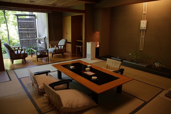 予約していたのはいちばんスタンダードな和室のお部屋。水屋、トイレ×2、洗面所(ダブルシンク)、部屋付き露天風呂、和室、広縁という構成。すごく広々としているという印象は受けませんが、十分なスペースではあります。
