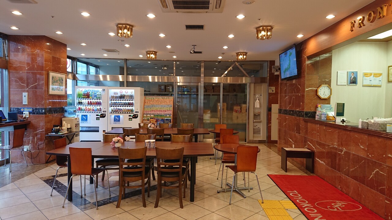 フロントにあるコーナーは広くて、コーヒー、新聞等のサービスが