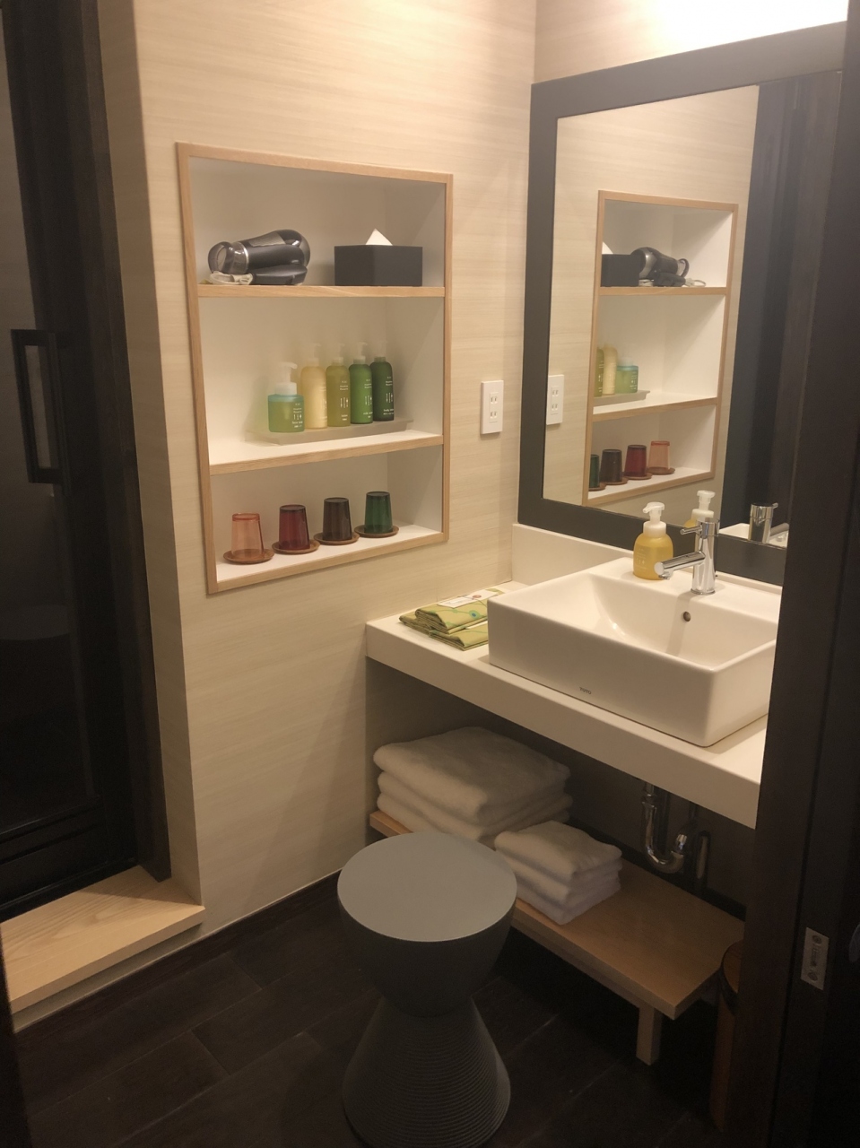 水出し緑茶と茶菓子を頂きながらゆっくりと椅子に座ってチェックインの手続きをします。