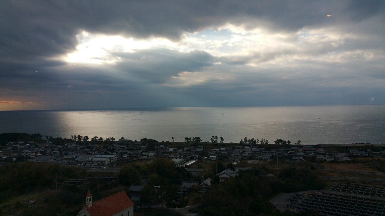高台なので、お部屋から海がよく見えます。プールもあります。