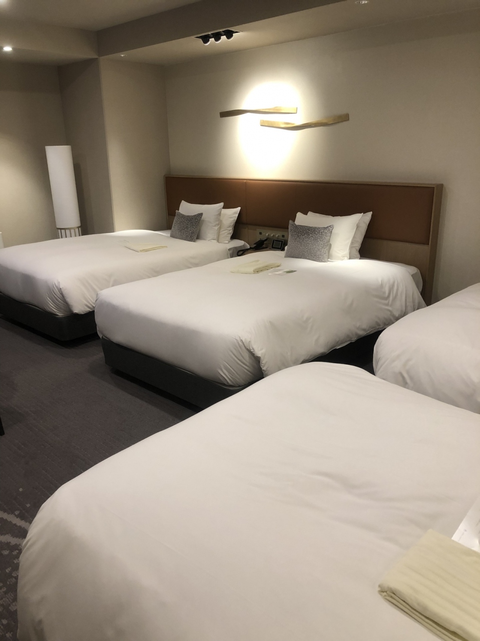 大阪駅がすぐ、阪神、阪急、地下鉄なども近くて非常に便利なホテルです。今回はトリプルルームを予約していたのですがこちらのミスで喫煙ルームになっていたので禁煙のお部屋をお願いしたところファミリールームの禁煙のお部屋が空いていたのでそちらに変更していただけました。窓が2か所ありベッドも4つ入っていてとても広いお部屋でした。お風呂とトイレが別になっているのもよかったです。朝食は100種類のお料理やドリンクが並ぶビュッフェです。オムレツも作ってくれますし関西らしく出し巻き卵やたこ焼きなんかもありました。お買い物はホテルのとなりが大丸。近くに阪急、阪神百貨店、専門店や飲食店がたくさんはいっているルクアなど1日で見きれないほどあります。交通機関が近いのでUSJや京都にも簡単にアクセスできます。絶対また泊まりたいホテルです。