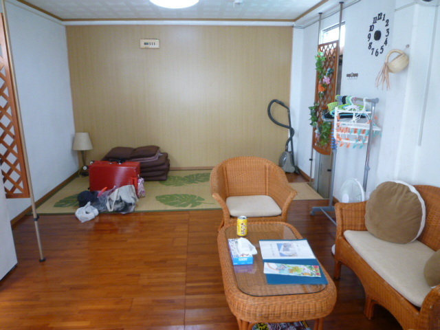 白保地区に位置する一軒家。20畳程の平屋建てで隣が大家さん。管理者は他に居てチェックイン時電話連絡する。浴槽はない。シャワー室はかなり広くトイレと同じだが一般のユニットバスとは違うイメージです。洗濯機、乾燥機あり。ガスコンロに中型冷蔵庫、レンジ、食器、調理器設置で長期間滞在できる。