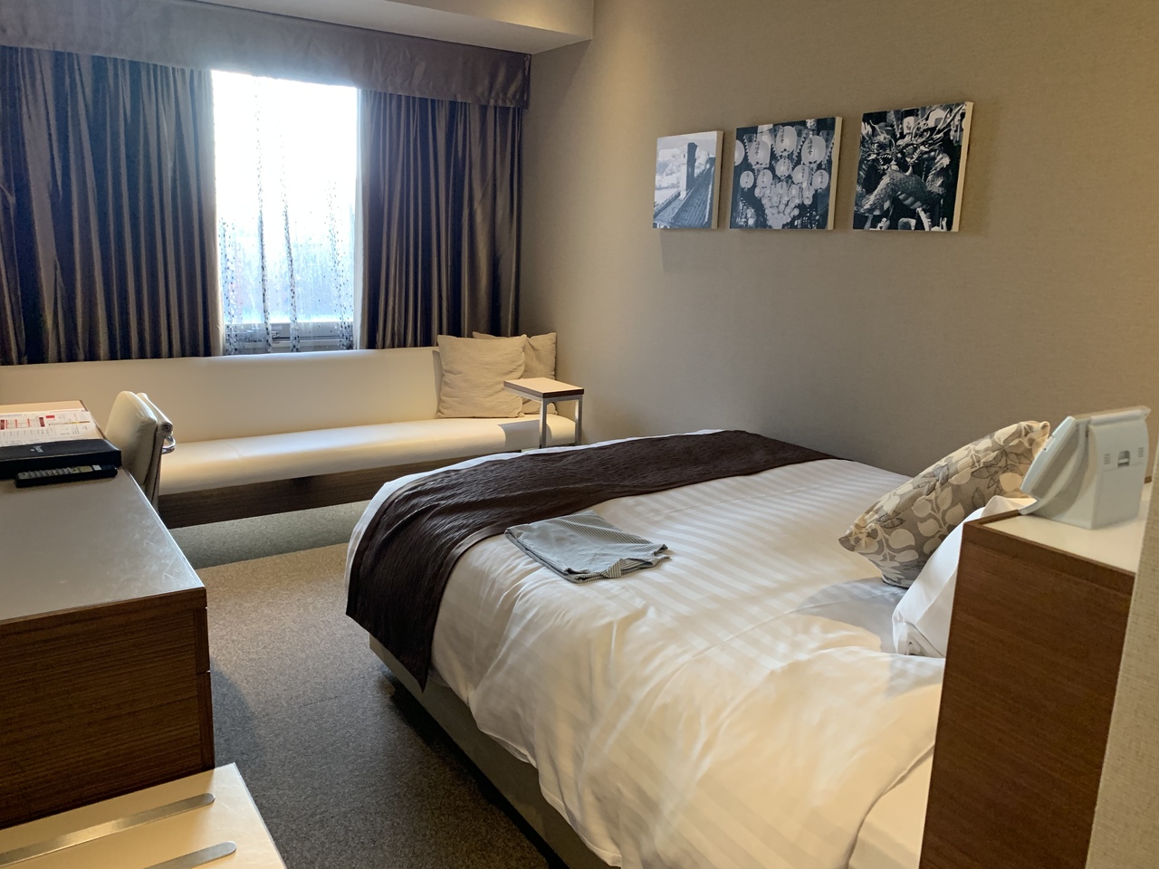 部屋はさほど狭くは感じず、窓際に沿ったソファーが使い勝手も座り心地もよかったです。